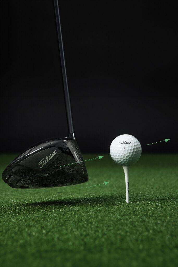 Om vanaf de tee een optimale lengte te bereiken, moet je de bal raken terwijl het clubhoofd omhoog gaat, niet omlaag. Dit betekent dat je een positieve aanvalshoek hebt, en dat het laagste punt van je swing achter de bal ligt. Een trucje om de bal pas te raken wanneer je club omhoog gaat, is om de tee wat verder van je af te plaatsen, dus voor je voorste schouder. Maar let erop dat je je schouders niet te veel opent.